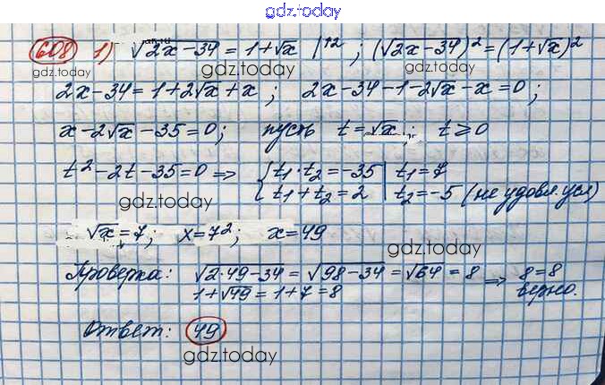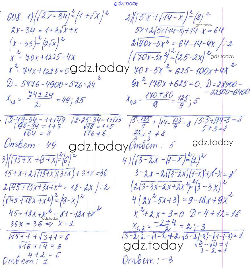 Ответы к Упражнения 608 Учебнику по Алгебре для 10 класса Колягин, Ткачёва Базовый и углубленный уровень Просвещение 2017