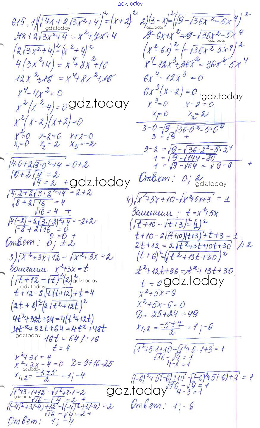 На страницах сайта gdz.today вы найдете учебный и вспомогательный материал, направленный на улучшения знаний школьной программы. ГДЗ - онлайн мир знаний Упражнения 615 Учебнику по Алгебре для 10 класса Колягин, Ткачёва Базовый и углубленный уровень Просвещение 2017