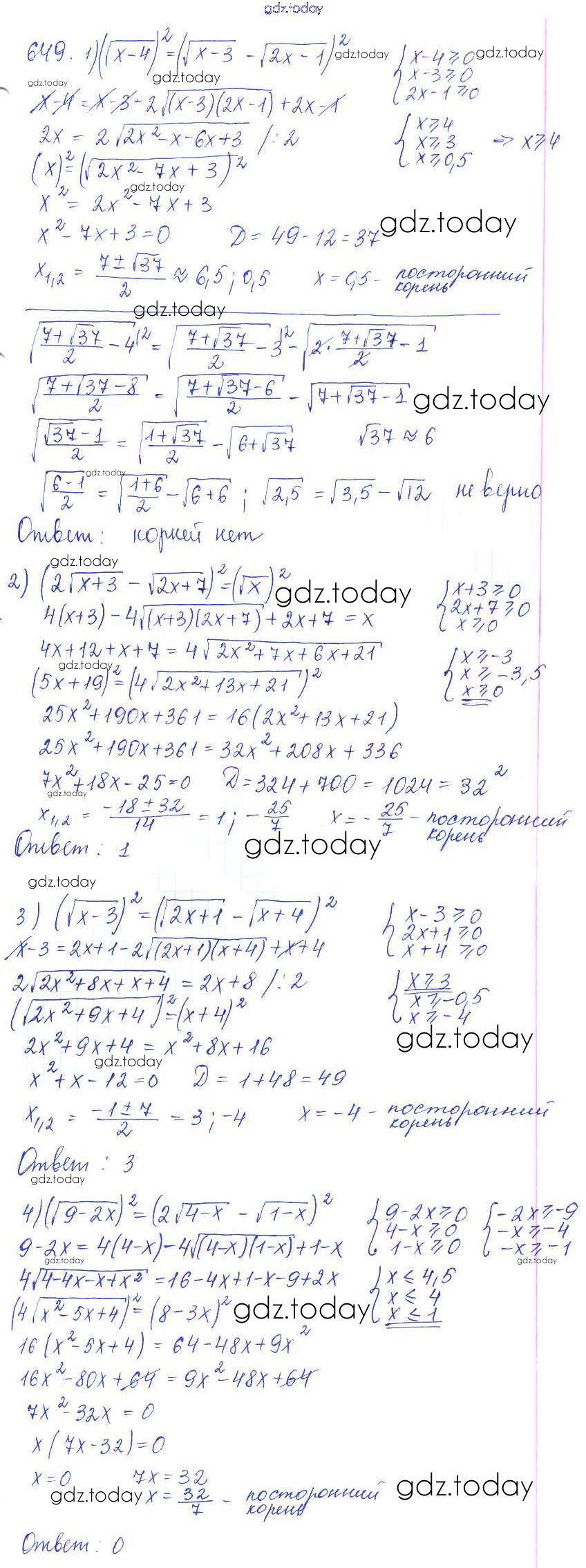 На страницах сайта gdz.today вы найдете учебный и вспомогательный материал, направленный на улучшения знаний школьной программы. ГДЗ - онлайн мир знаний Упражнения 649 Учебнику по Алгебре для 10 класса Колягин, Ткачёва Базовый и углубленный уровень Просвещение 2017