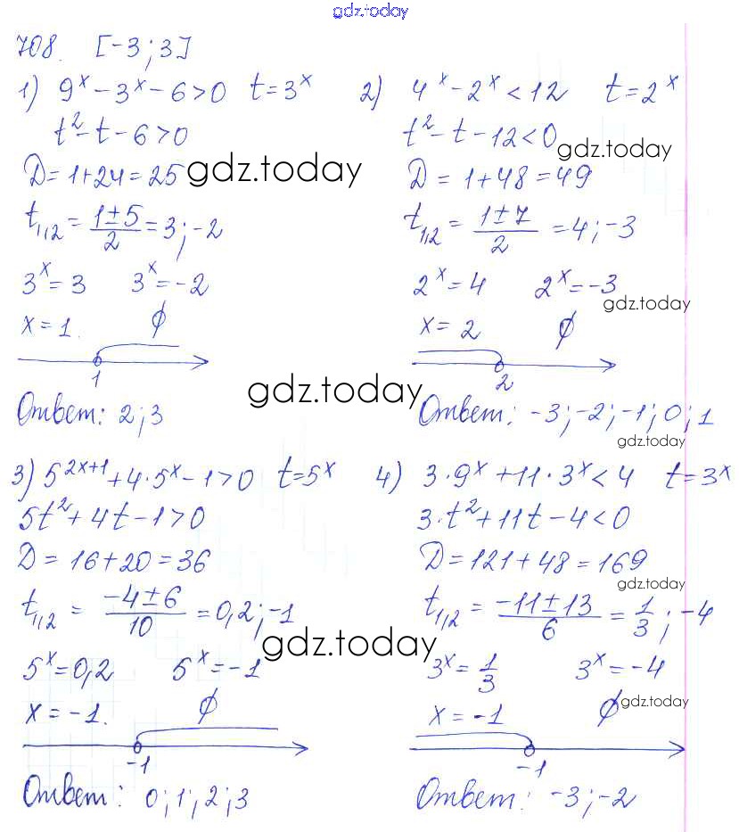 На страницах сайта gdz.today вы найдете учебный и вспомогательный материал, направленный на улучшения знаний школьной программы. ГДЗ - онлайн мир знаний Упражнения 708 Учебнику по Алгебре для 10 класса Колягин, Ткачёва Базовый и углубленный уровень Просвещение 2017