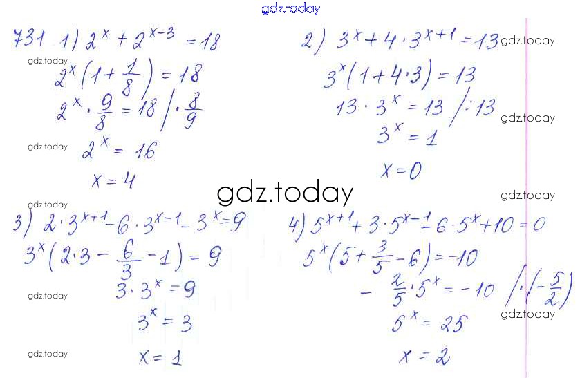 На страницах сайта gdz.today вы найдете учебный и вспомогательный материал, направленный на улучшения знаний школьной программы. ГДЗ - онлайн мир знаний Упражнения 731 Учебнику по Алгебре для 10 класса Колягин, Ткачёва Базовый и углубленный уровень Просвещение 2017
