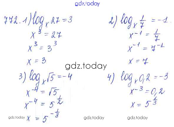 Ответы к Упражнения 772 Учебнику по Алгебре для 10 класса Колягин, Ткачёва Базовый и углубленный уровень Просвещение 2017