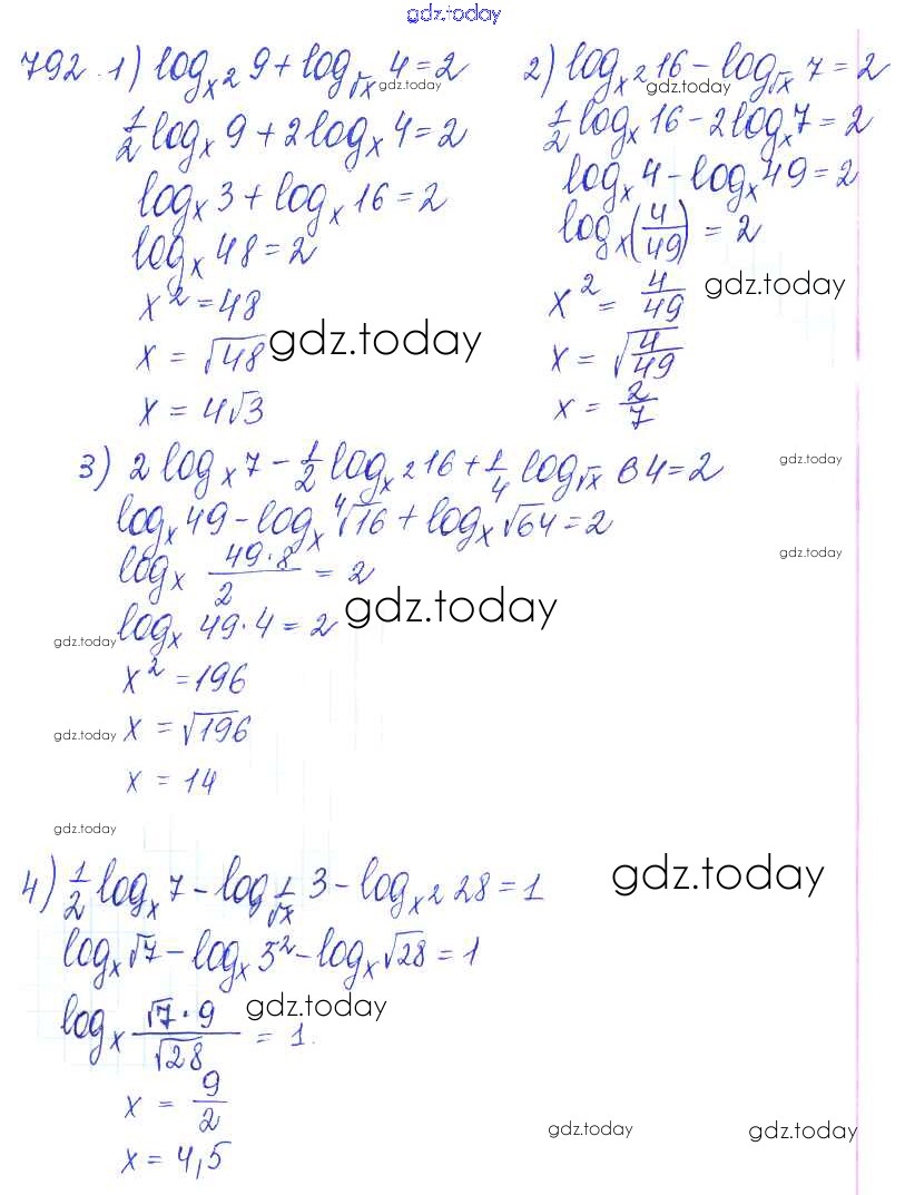 Ответы к Упражнения 792 Учебнику по Алгебре для 10 класса Колягин, Ткачёва Базовый и углубленный уровень Просвещение 2017