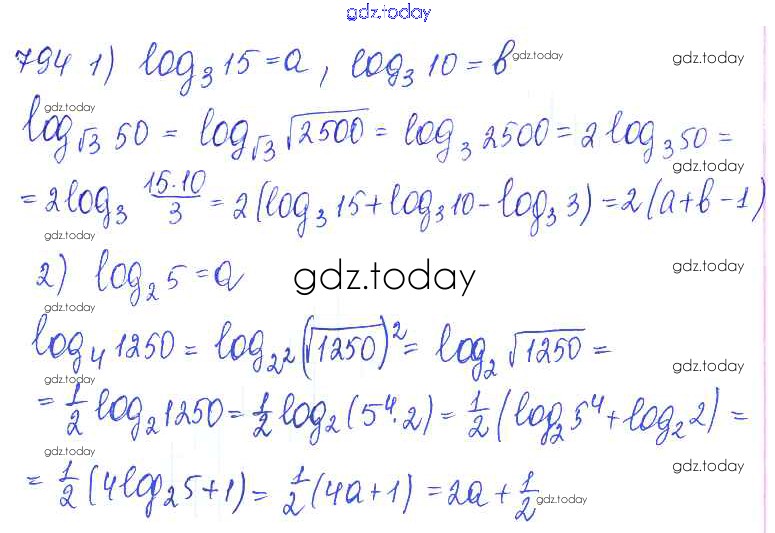На страницах сайта gdz.today вы найдете учебный и вспомогательный материал, направленный на улучшения знаний школьной программы. ГДЗ - онлайн мир знаний Упражнения 794 Учебнику по Алгебре для 10 класса Колягин, Ткачёва Базовый и углубленный уровень Просвещение 2017