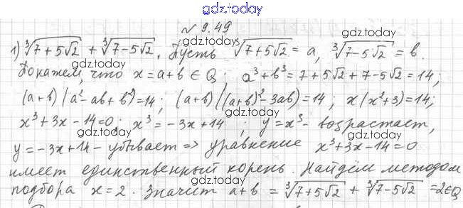 Ответы к Решение к §9 9.49 Учебнику по Алгебре для 10 класса Мерзляк, Номировский Базовый уровень Вентана-граф Алгоритм успеха 2022