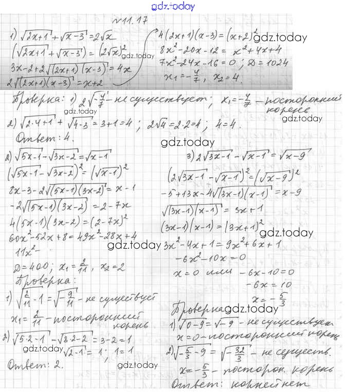 Ответы к Решение к §11 11.17 Учебнику по Алгебре для 10 класса Мерзляк, Номировский Базовый уровень Вентана-граф Алгоритм успеха 2022