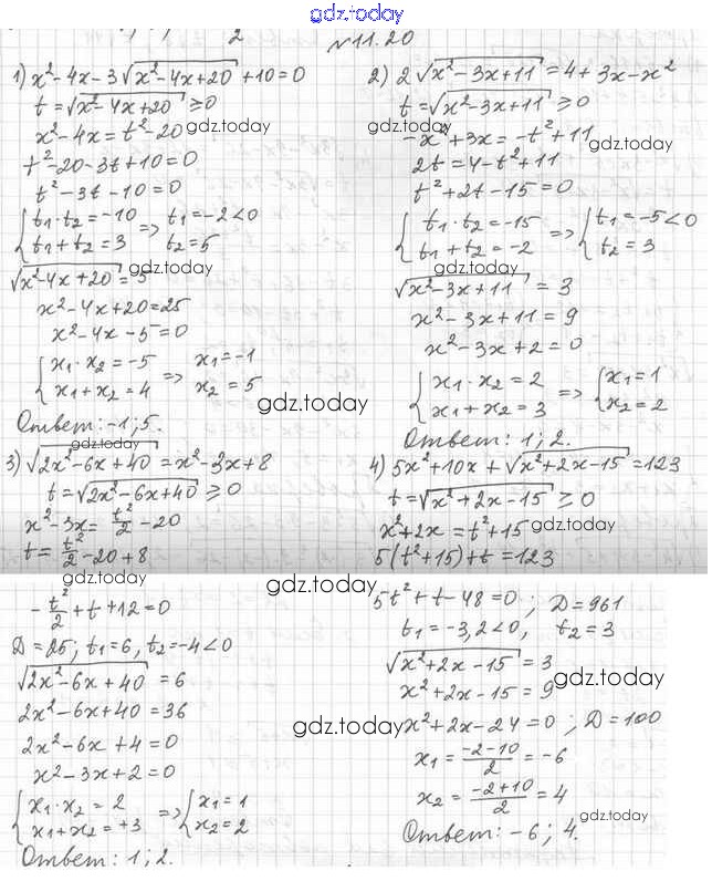Ответы к Решение к §11 11.20 Учебнику по Алгебре для 10 класса Мерзляк, Номировский Базовый уровень Вентана-граф Алгоритм успеха 2022