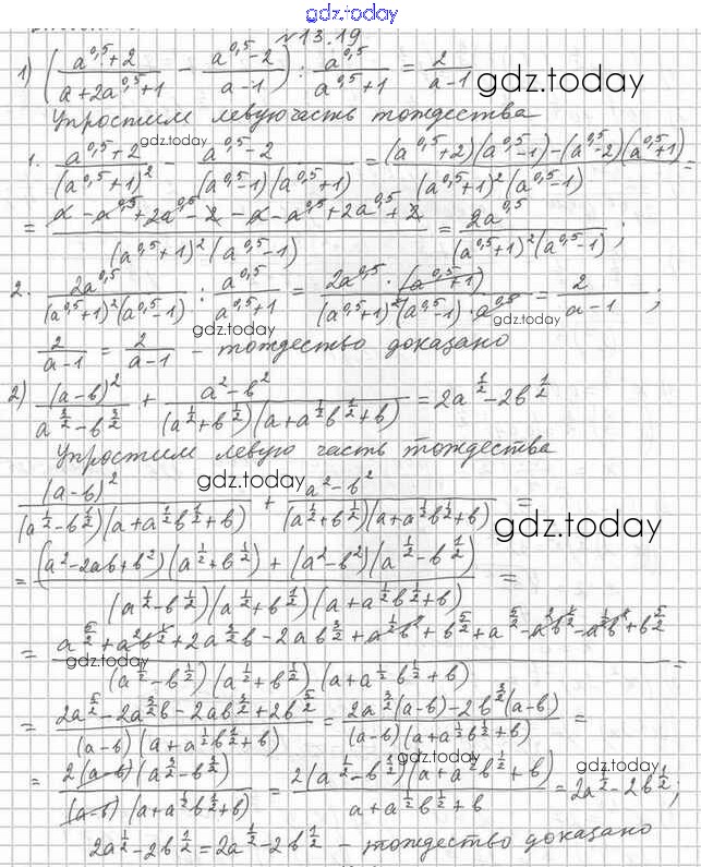 На страницах сайта gdz.today вы найдете учебный и вспомогательный материал, направленный на улучшения знаний школьной программы. ГДЗ - онлайн мир знаний Решение к §13 13.19 Учебнику по Алгебре для 10 класса Мерзляк, Номировский Углубленный уровень Вентана-граф Алгоритм успеха 2019
