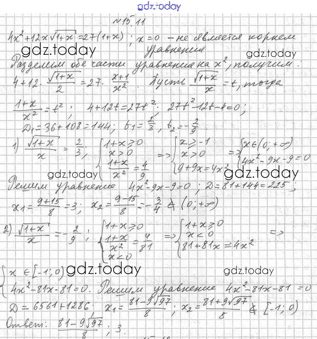 На страницах сайта gdz.today вы найдете учебный и вспомогательный материал, направленный на улучшения знаний школьной программы. ГДЗ - онлайн мир знаний Решение к §15 15.11 Учебнику по Алгебре для 10 класса Мерзляк, Номировский Углубленный уровень Вентана-граф Алгоритм успеха 2019