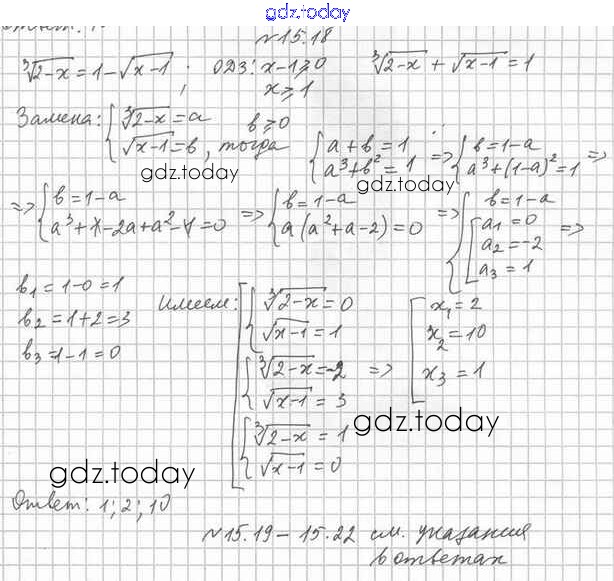 На страницах сайта gdz.today вы найдете учебный и вспомогательный материал, направленный на улучшения знаний школьной программы. ГДЗ - онлайн мир знаний Решение к §15 15.18 Учебнику по Алгебре для 10 класса Мерзляк, Номировский Углубленный уровень Вентана-граф Алгоритм успеха 2019