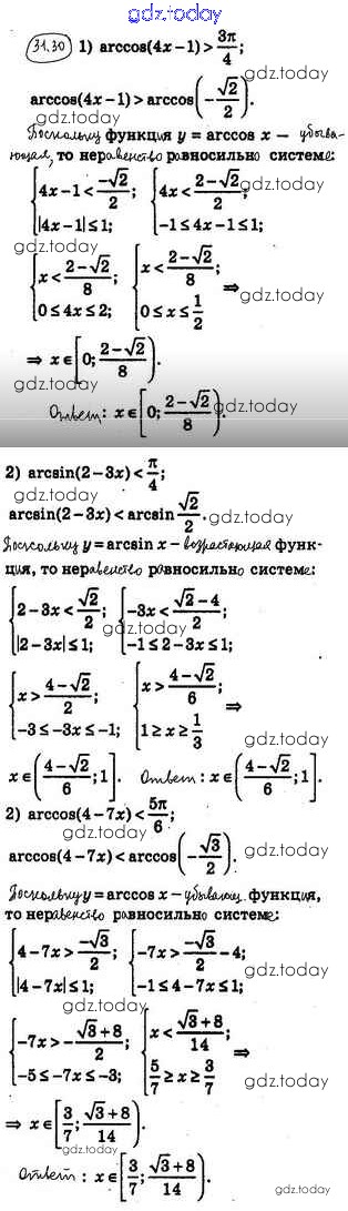 Ответы к Решение к §31 31.30 Учебнику по Алгебре для 10 класса Мерзляк, Номировский Углубленный уровень Вентана-граф Алгоритм успеха 2019