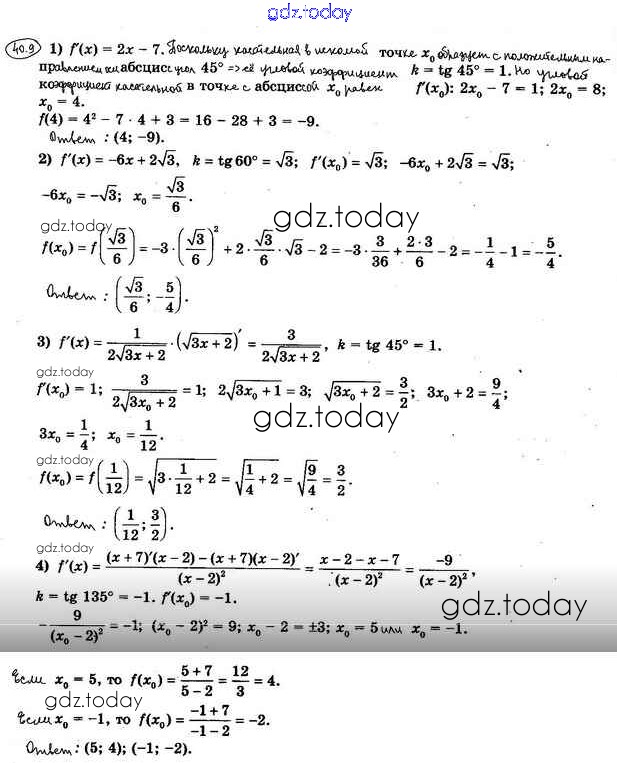 На страницах сайта gdz.today вы найдете учебный и вспомогательный материал, направленный на улучшения знаний школьной программы. ГДЗ - онлайн мир знаний Решение к §40 40.9 Учебнику по Алгебре для 10 класса Мерзляк, Номировский Углубленный уровень Вентана-граф Алгоритм успеха 2019