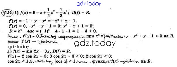 На страницах сайта gdz.today вы найдете учебный и вспомогательный материал, направленный на улучшения знаний школьной программы. ГДЗ - онлайн мир знаний Решение к §41 41.10 Учебнику по Алгебре для 10 класса Мерзляк, Номировский Углубленный уровень Вентана-граф Алгоритм успеха 2019
