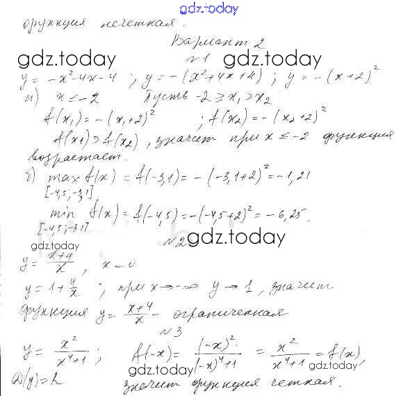 На страницах сайта gdz.today вы найдете учебный и вспомогательный материал, направленный на улучшения знаний школьной программы. ГДЗ - онлайн мир знаний СР-2. Свойства функций Решение к главе 1. Числовые функции вариант 2 Самостоятельным работам по Алгебре для 10 класса Александрова Базовый уровень Мнемозина 2017