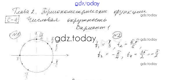 На страницах сайта gdz.today вы найдете учебный и вспомогательный материал, направленный на улучшения знаний школьной программы. ГДЗ - онлайн мир знаний СР-4. Числовая окружность Решение к главе 2. Тригонометрические функции вариант 1 Самостоятельным работам по Алгебре для 10 класса Александрова Базовый уровень Мнемозина 2017