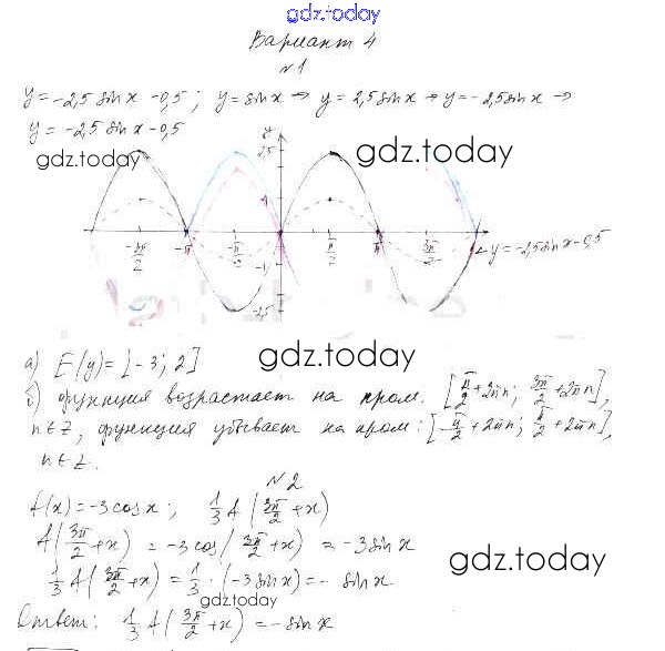 На страницах сайта gdz.today вы найдете учебный и вспомогательный материал, направленный на улучшения знаний школьной программы. ГДЗ - онлайн мир знаний СР-15. Преобразование графиков тригонометрических функций Решение к главе 2. Тригонометрические функции вариант 4 Самостоятельным работам по Алгебре для 10 класса Александрова Базовый уровень Мнемозина 2017