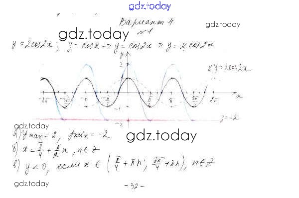 Ответы к СР-16. Преобразование графиков тригонометрических функций Решение к главе 2. Тригонометрические функции вариант 4 Самостоятельным работам по Алгебре для 10 класса Александрова Базовый уровень Мнемозина 2017