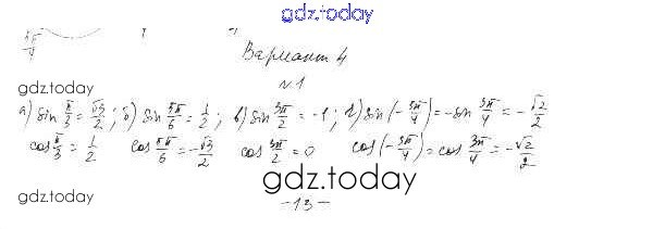 На страницах сайта gdz.today вы найдете учебный и вспомогательный материал, направленный на улучшения знаний школьной программы. ГДЗ - онлайн мир знаний СР-7. Синус и косинус Решение к главе 2. Тригонометрические функции вариант 4 Самостоятельным работам по Алгебре для 10 класса Александрова Базовый уровень Мнемозина 2017