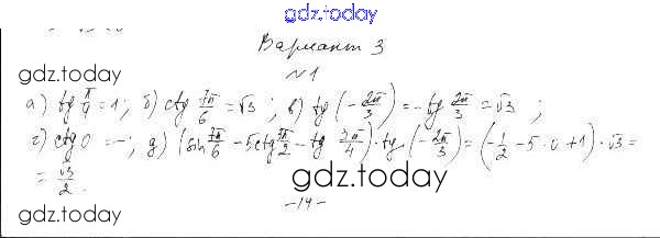 Ответы к СР-8. Тангес и котангес Решение к главе 2. Тригонометрические функции вариант 3 Самостоятельным работам по Алгебре для 10 класса Александрова Базовый уровень Мнемозина 2017