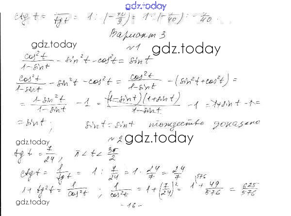 Ответы к СР-9. Тригонометрические функции числового аргумента Решение к главе 2. Тригонометрические функции вариант 3 Самостоятельным работам по Алгебре для 10 класса Александрова Базовый уровень Мнемозина 2017