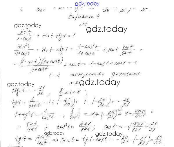 Ответы к СР-9. Тригонометрические функции числового аргумента Решение к главе 2. Тригонометрические функции вариант 4 Самостоятельным работам по Алгебре для 10 класса Александрова Базовый уровень Мнемозина 2017