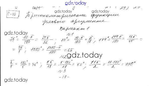 Ответы к СР-10. Тригонометрические функции углового аргумента Решение к главе 2. Тригонометрические функции вариант 1 Самостоятельным работам по Алгебре для 10 класса Александрова Базовый уровень Мнемозина 2017