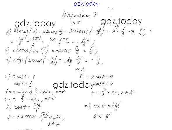 На страницах сайта gdz.today вы найдете учебный и вспомогательный материал, направленный на улучшения знаний школьной программы. ГДЗ - онлайн мир знаний СР-18. Арккосинус и решение уравнения cos t=a Решение к главе 3. Тригонометрические уравнения вариант 4 Самостоятельным работам по Алгебре для 10 класса Александрова Базовый уровень Мнемозина 2017