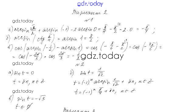 На страницах сайта gdz.today вы найдете учебный и вспомогательный материал, направленный на улучшения знаний школьной программы. ГДЗ - онлайн мир знаний СР-19. Арккосинус и решение уравнения sin t=a Решение к главе 3. Тригонометрические уравнения вариант 2 Самостоятельным работам по Алгебре для 10 класса Александрова Базовый уровень Мнемозина 2017