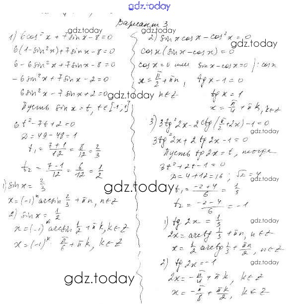 На страницах сайта gdz.today вы найдете учебный и вспомогательный материал, направленный на улучшения знаний школьной программы. ГДЗ - онлайн мир знаний СР-22. Тригонометрические уравнения Решение к главе 3. Тригонометрические уравнения вариант 3 Самостоятельным работам по Алгебре для 10 класса Александрова Базовый уровень Мнемозина 2017