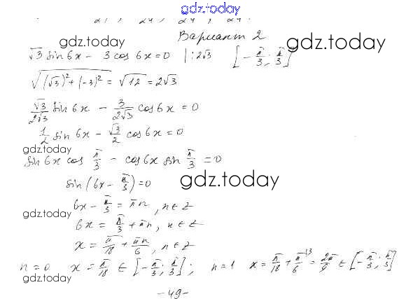 На страницах сайта gdz.today вы найдете учебный и вспомогательный материал, направленный на улучшения знаний школьной программы. ГДЗ - онлайн мир знаний СР-23. Тригонометрические уравнения Решение к главе 3. Тригонометрические уравнения вариант 2 Самостоятельным работам по Алгебре для 10 класса Александрова Базовый уровень Мнемозина 2017