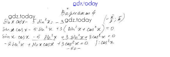 Ответы к СР-23. Тригонометрические уравнения Решение к главе 3. Тригонометрические уравнения вариант 4 Самостоятельным работам по Алгебре для 10 класса Александрова Базовый уровень Мнемозина 2017