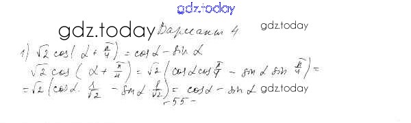 На страницах сайта gdz.today вы найдете учебный и вспомогательный материал, направленный на улучшения знаний школьной программы. ГДЗ - онлайн мир знаний СР-25. Синус и косинус суммы и разности аргументов Решение к главе 4. Преобразование тригонометрических выражений вариант 4 Самостоятельным работам по Алгебре для 10 класса Александрова Базовый уровень Мнемозина 2017