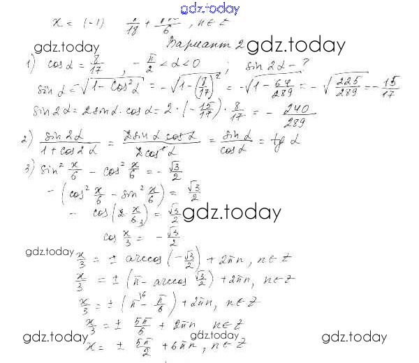 Ответы к СР-28. Формулы двойного аргумента Решение к главе 4. Преобразование тригонометрических выражений вариант 2 Самостоятельным работам по Алгебре для 10 класса Александрова Базовый уровень Мнемозина 2017