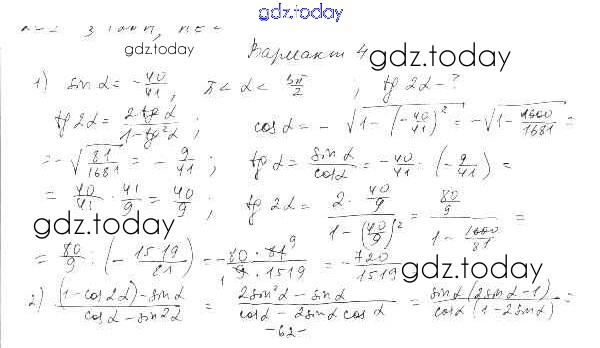 Ответы к СР-28. Формулы двойного аргумента Решение к главе 4. Преобразование тригонометрических выражений вариант 4 Самостоятельным работам по Алгебре для 10 класса Александрова Базовый уровень Мнемозина 2017