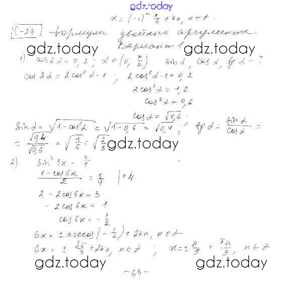 Ответы к СР-29. Формулы двойного аргумента Решение к главе 4. Преобразование тригонометрических выражений вариант 1 Самостоятельным работам по Алгебре для 10 класса Александрова Базовый уровень Мнемозина 2017