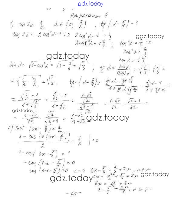 На страницах сайта gdz.today вы найдете учебный и вспомогательный материал, направленный на улучшения знаний школьной программы. ГДЗ - онлайн мир знаний СР-29. Формулы двойного аргумента Решение к главе 4. Преобразование тригонометрических выражений вариант 4 Самостоятельным работам по Алгебре для 10 класса Александрова Базовый уровень Мнемозина 2017