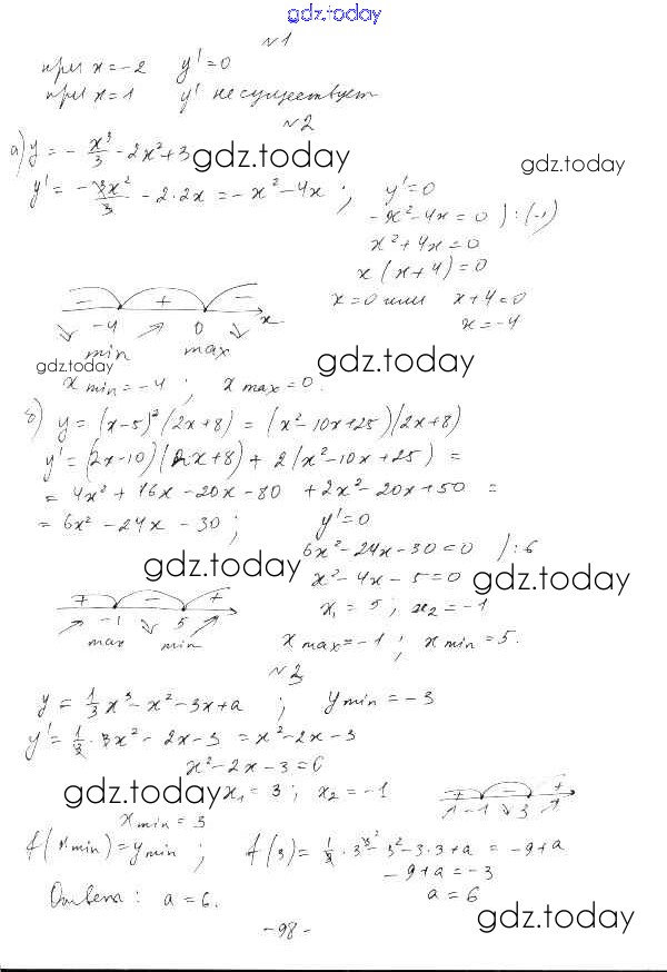 Ответы к СР-44. Применение производной для исследования функций на экстремум Решение к главе 5. Производная вариант 1 Самостоятельным работам по Алгебре для 10 класса Александрова Базовый уровень Мнемозина 2017
