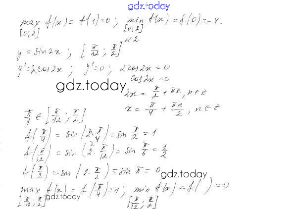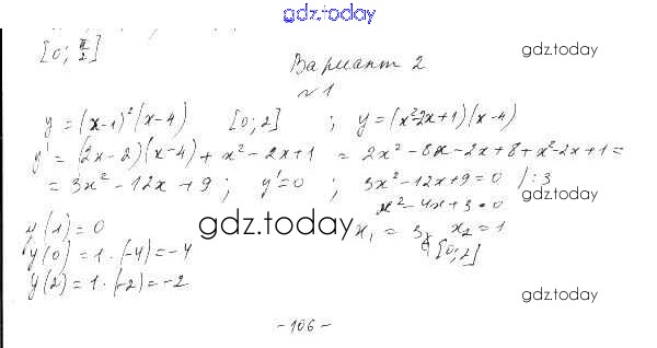 На страницах сайта gdz.today вы найдете учебный и вспомогательный материал, направленный на улучшения знаний школьной программы. ГДЗ - онлайн мир знаний СР-46. Применение производной для отыскивания наибольшего и наименьшего значений непрерывной функции на промежутке Решение к главе 5. Производная вариант 2 Самостоятельным работам по Алгебре для 10 класса Александрова Базовый уровень Мнемозина 2017