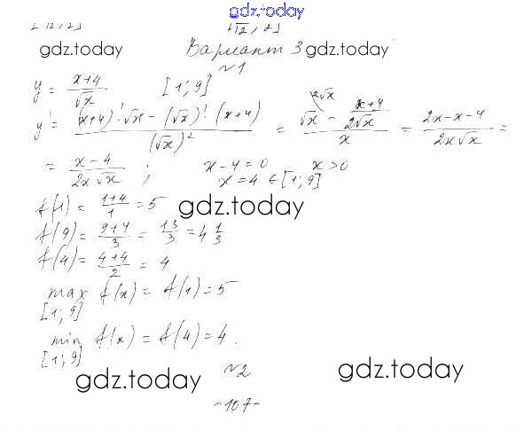 Ответы к СР-46. Применение производной для отыскивания наибольшего и наименьшего значений непрерывной функции на промежутке Решение к главе 5. Производная вариант 3 Самостоятельным работам по Алгебре для 10 класса Александрова Базовый уровень Мнемозина 2017