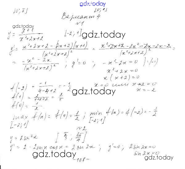 Ответы к СР-46. Применение производной для отыскивания наибольшего и наименьшего значений непрерывной функции на промежутке Решение к главе 5. Производная вариант 4 Самостоятельным работам по Алгебре для 10 класса Александрова Базовый уровень Мнемозина 2017