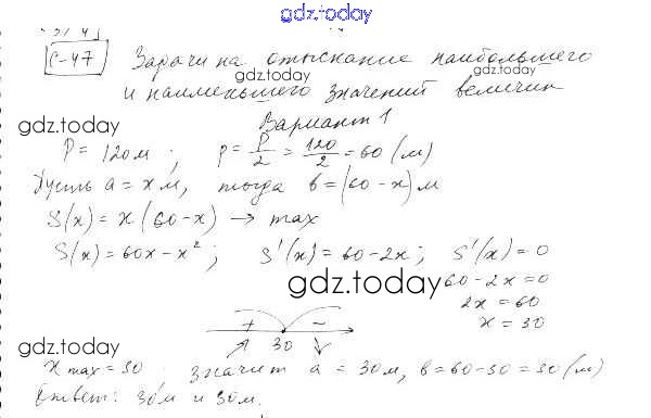 На страницах сайта gdz.today вы найдете учебный и вспомогательный материал, направленный на улучшения знаний школьной программы. ГДЗ - онлайн мир знаний СР-47. Задачи на отыскивания наибольшего и наименьшего значений величин Решение к главе 5. Производная вариант 1 Самостоятельным работам по Алгебре для 10 класса Александрова Базовый уровень Мнемозина 2017