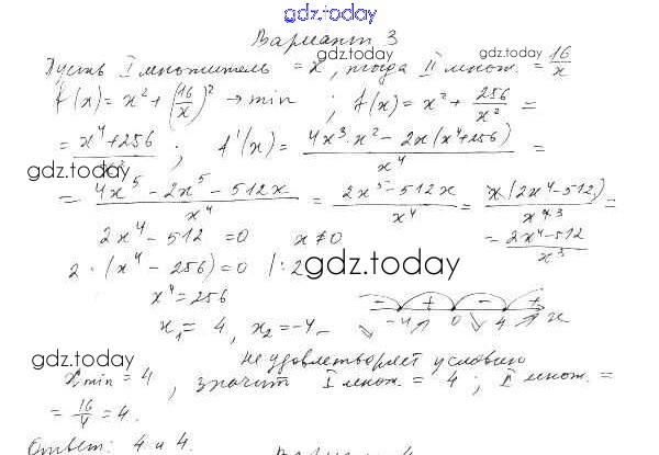 Ответы к СР-47. Задачи на отыскивания наибольшего и наименьшего значений величин Решение к главе 5. Производная вариант 3 Самостоятельным работам по Алгебре для 10 класса Александрова Базовый уровень Мнемозина 2017