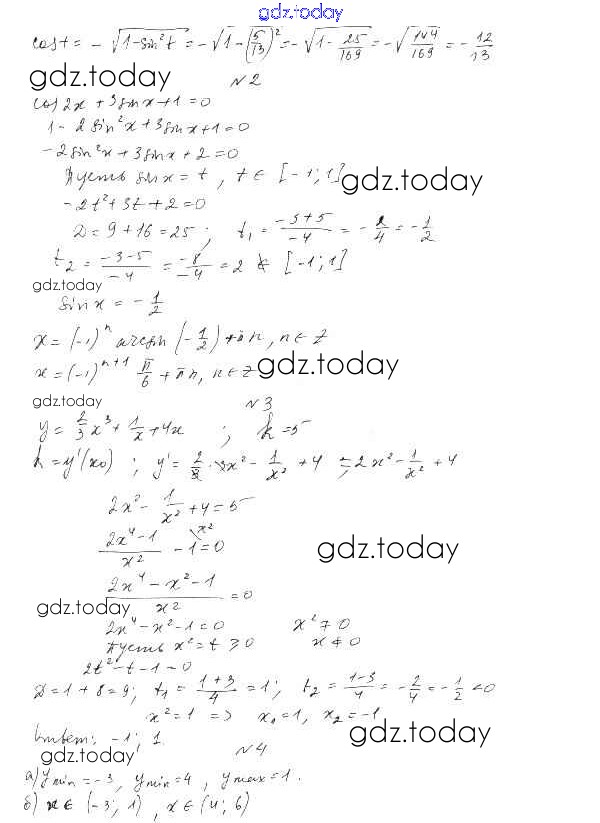Ответы к СР-48. Итоговое повторение Решение к главе 5. Производная вариант 4 Самостоятельным работам по Алгебре для 10 класса Александрова Базовый уровень Мнемозина 2017