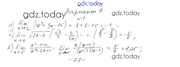 Ответы к СР-35. Предел функции Решение к главе 5. Производная вариант 4 Самостоятельным работам по Алгебре для 10 класса Александрова Базовый уровень Мнемозина 2017