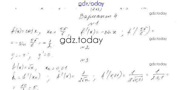 Ответы к СР-37. Вычисление производных Решение к главе 5. Производная вариант 4 Самостоятельным работам по Алгебре для 10 класса Александрова Базовый уровень Мнемозина 2017