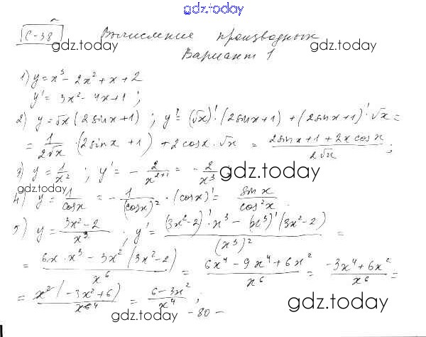 Ответы к СР-38. Вычисление производных Решение к главе 5. Производная вариант 1 Самостоятельным работам по Алгебре для 10 класса Александрова Базовый уровень Мнемозина 2017
