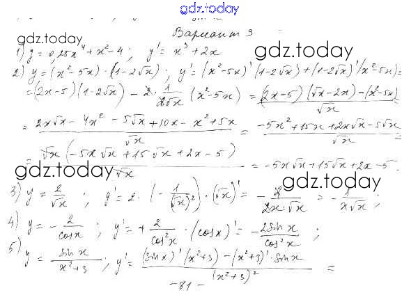 Ответы к СР-38. Вычисление производных Решение к главе 5. Производная вариант 3 Самостоятельным работам по Алгебре для 10 класса Александрова Базовый уровень Мнемозина 2017