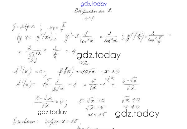 Ответы к СР-39. Вычисление производных Решение к главе 5. Производная вариант 2 Самостоятельным работам по Алгебре для 10 класса Александрова Базовый уровень Мнемозина 2017
