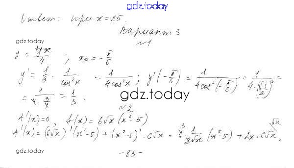 Ответы к СР-39. Вычисление производных Решение к главе 5. Производная вариант 3 Самостоятельным работам по Алгебре для 10 класса Александрова Базовый уровень Мнемозина 2017