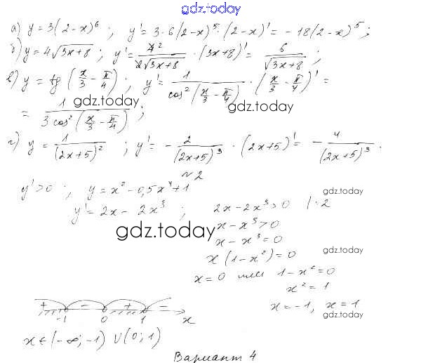 Ответы к СР-40. Вычисление производных Решение к главе 5. Производная вариант 3 Самостоятельным работам по Алгебре для 10 класса Александрова Базовый уровень Мнемозина 2017